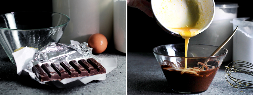 12. So we made this yesterday, and we’re still reeling from the deliciousness. I melted together some dark chocolate, chocolate chips, and some weird items from a box of Christmas Belgian chocolates that’s been sitting around for what’s beginning to seem like an unacceptably long time, PLUS a tablespoon of dark chocolate cocoa powder to replace some of the flour. It was, in a word, epic. Thanks for the awesome idea!!