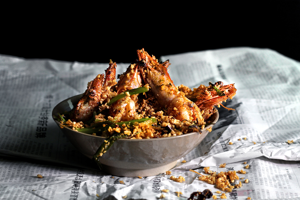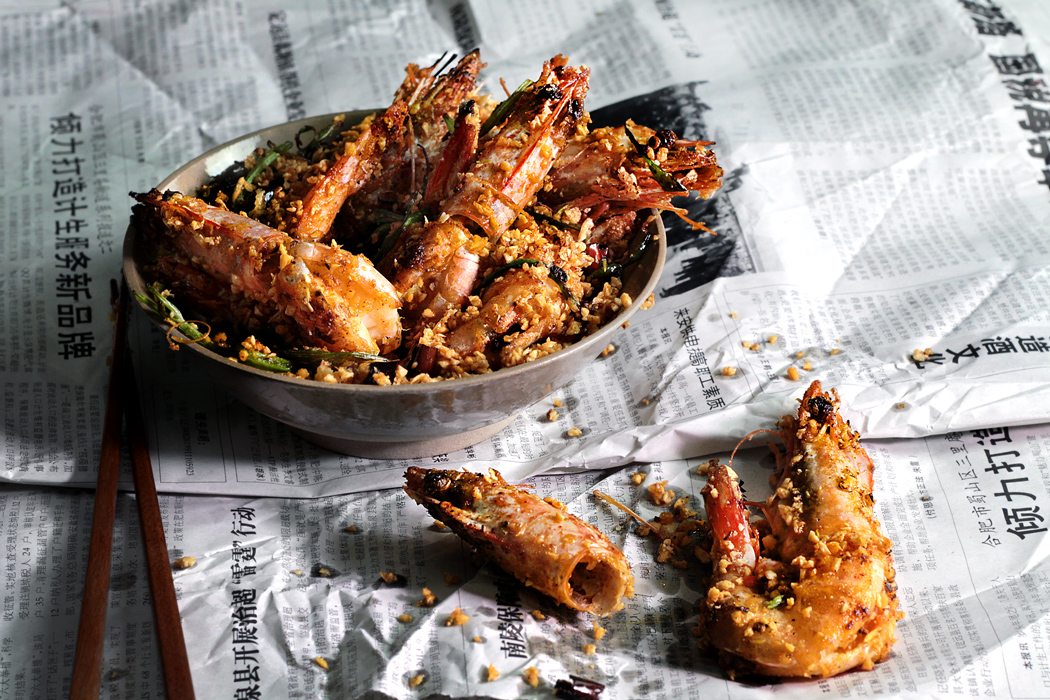 Serve immediately, meaning you suck the heads, chew on their crispy legs, down the meats and spoon the garlics over rice or savoury congee. It is excellent on both.