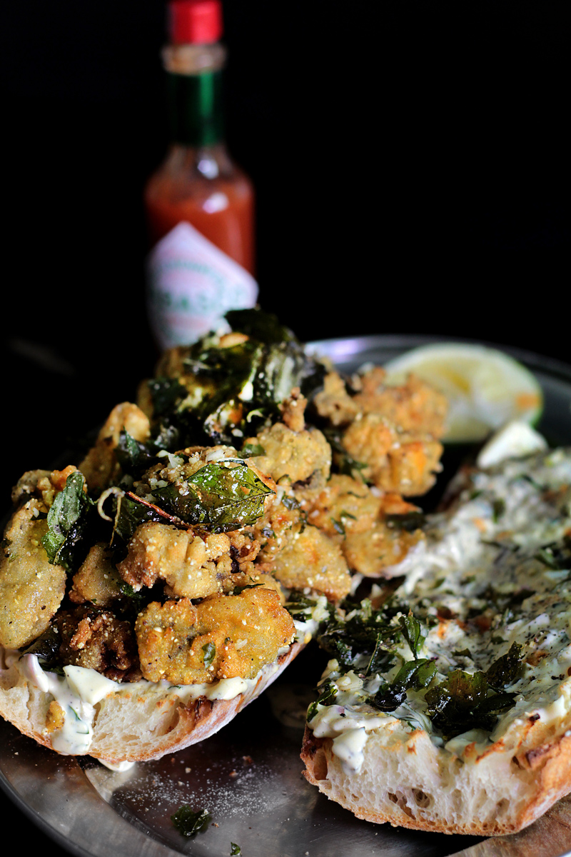 3. We must be on the same wavelength! I was just thinking of N’awlins recently and oyster po boys but I did not imagine anything like this. Bravo on your version and hope you had a bib when you ate this!